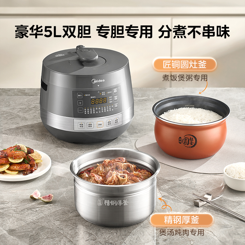 美的电压力锅家用双胆高压锅饭煲大容量煲汤多功能5L智能官方正品