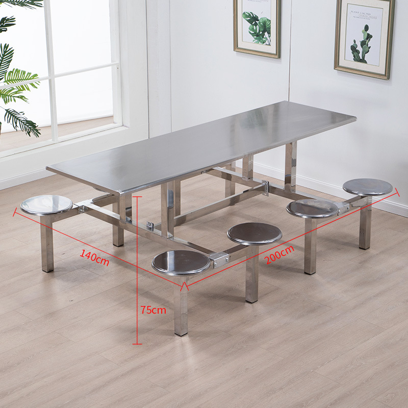 不锈钢餐桌椅 食堂连体餐桌椅组合8人位学校员工食堂餐桌椅