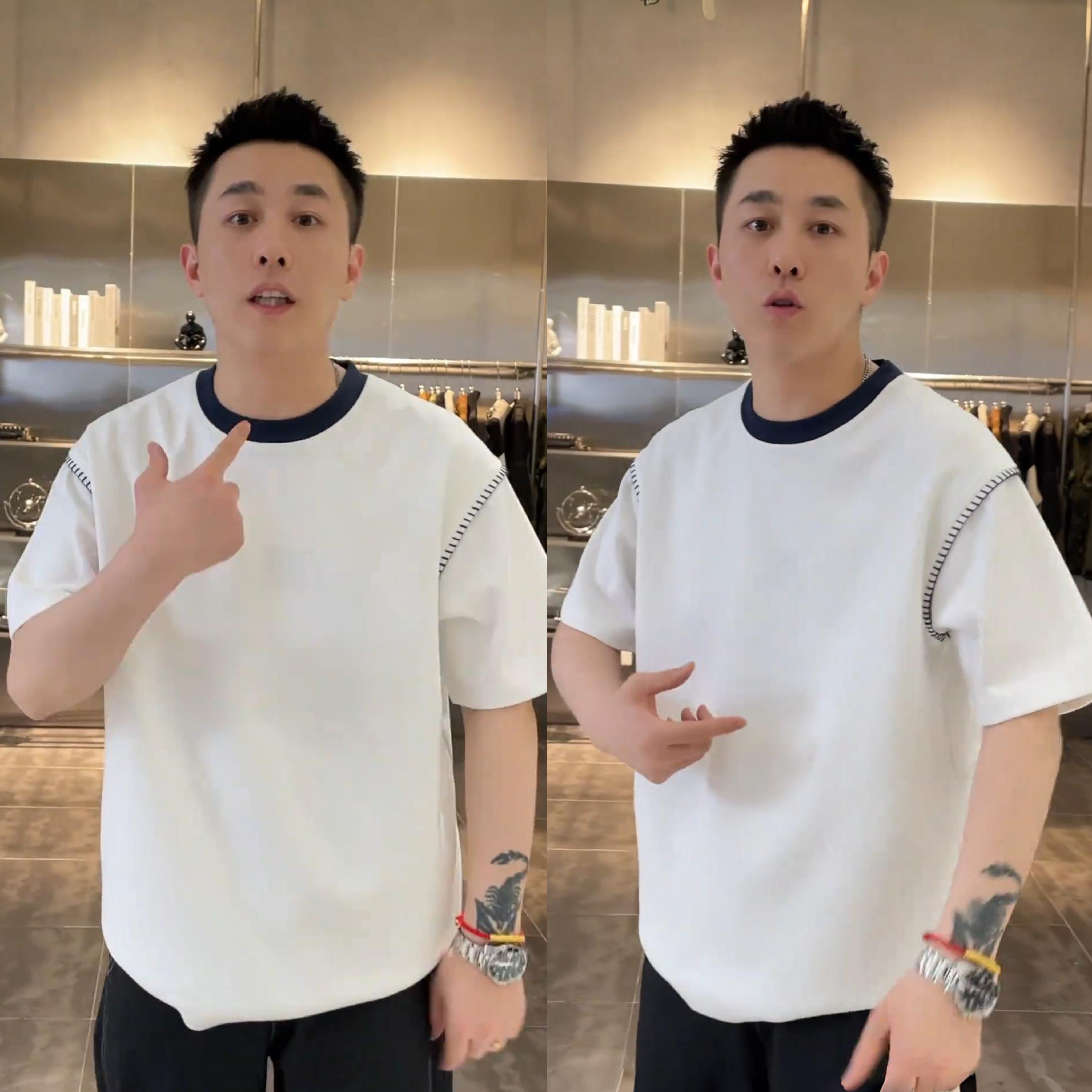 2025夏季高级感莫代尔圆领短袖男士简约时尚撞色宽松休闲半袖T恤
