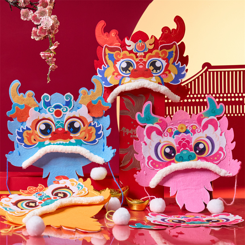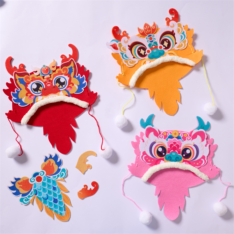 幼儿园龙头头饰手工diy制作材料包儿童新年元旦龙帽虎头帽小马帽