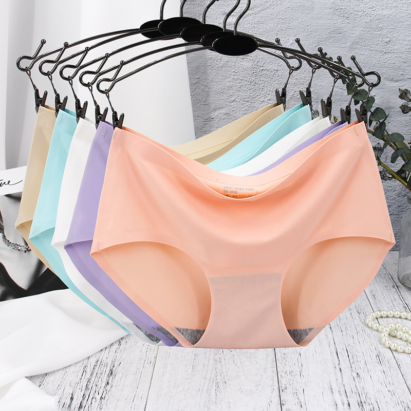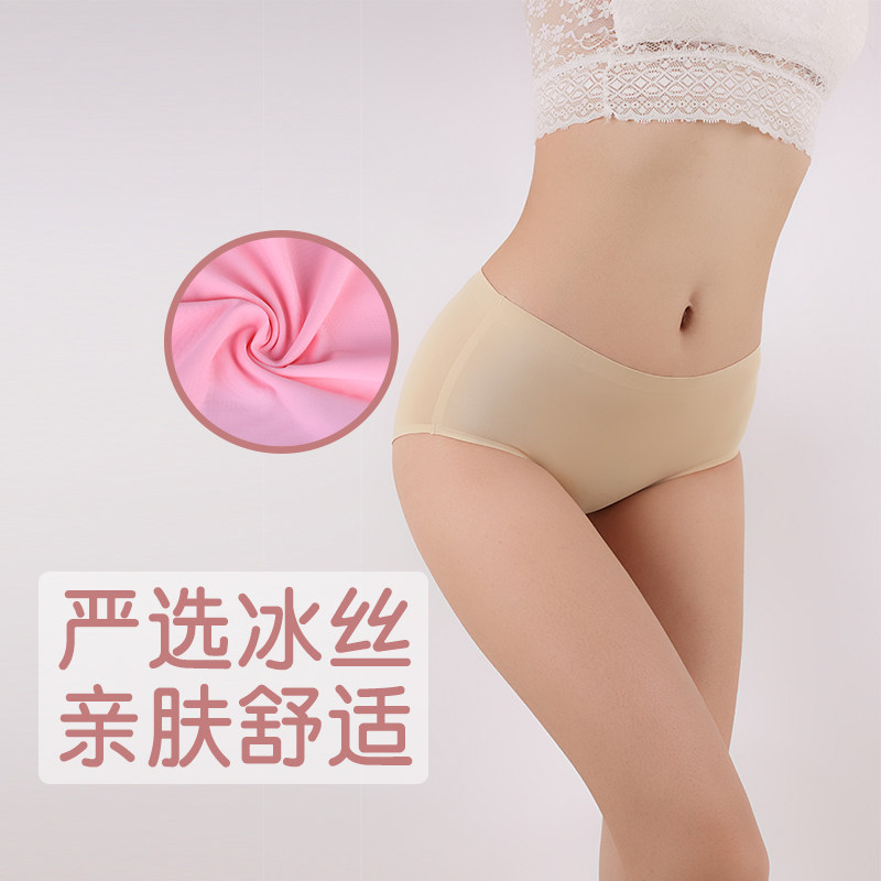 5条装 中腰无痕内裤女冰丝一片式透气女生纯色纯棉三角裤夏季性感
