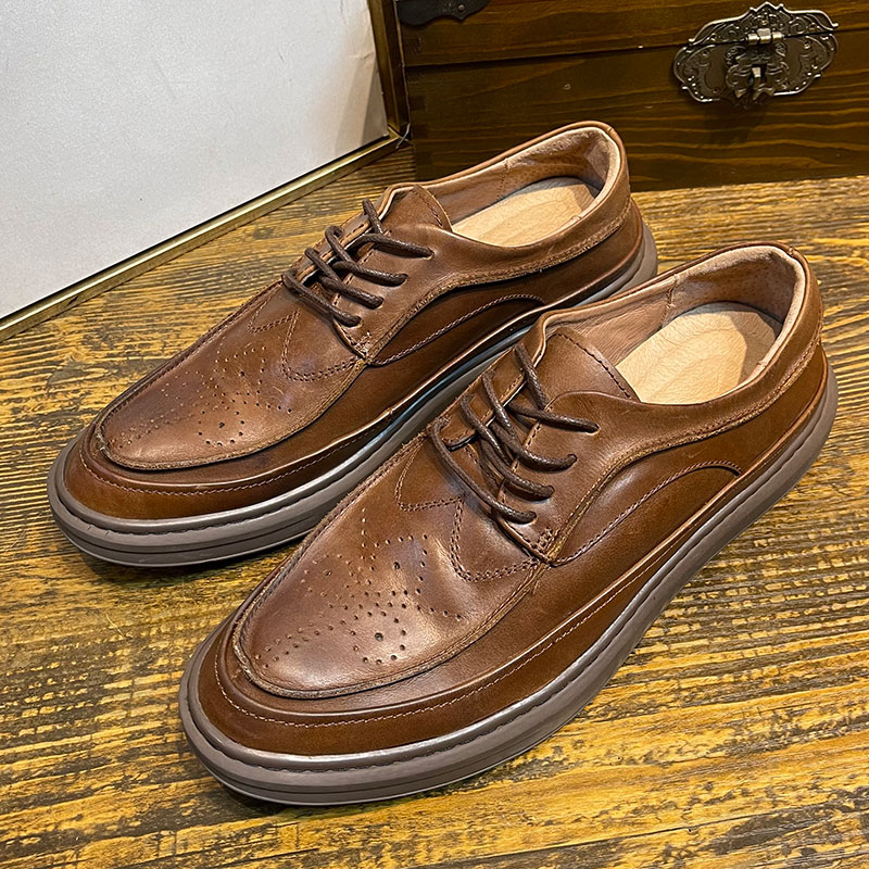 2024年新款夏季透气男鞋男士英伦时尚皮鞋百搭真皮休闲商务鞋潮