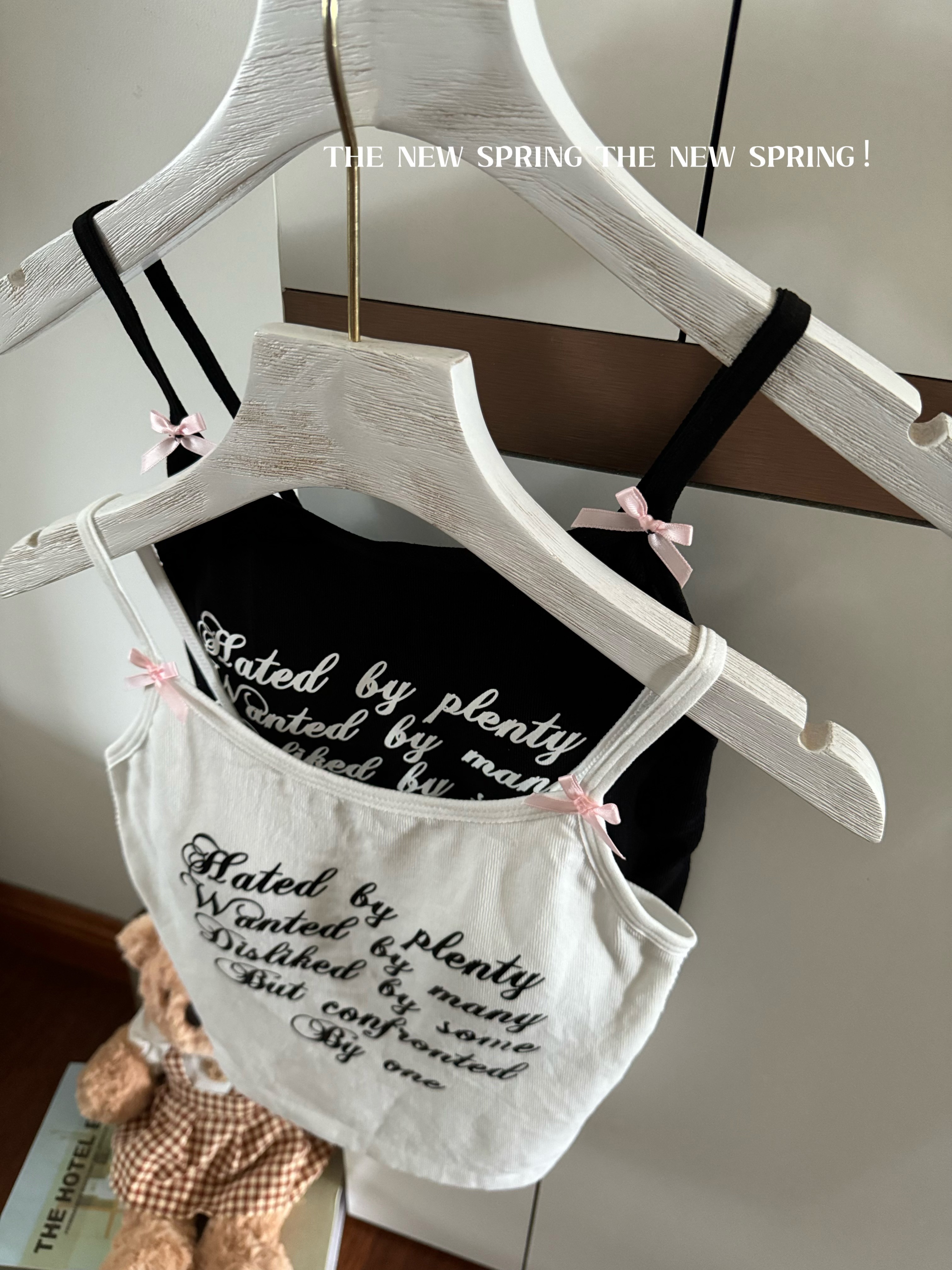 美式字母印花吊带背心女带胸垫夏季外穿美背修身显瘦小众百搭上衣