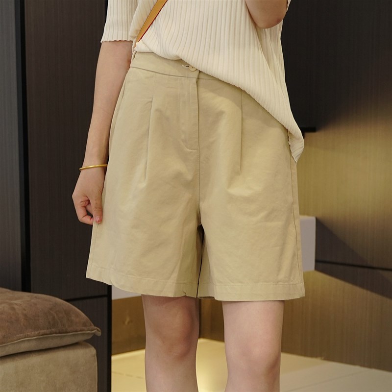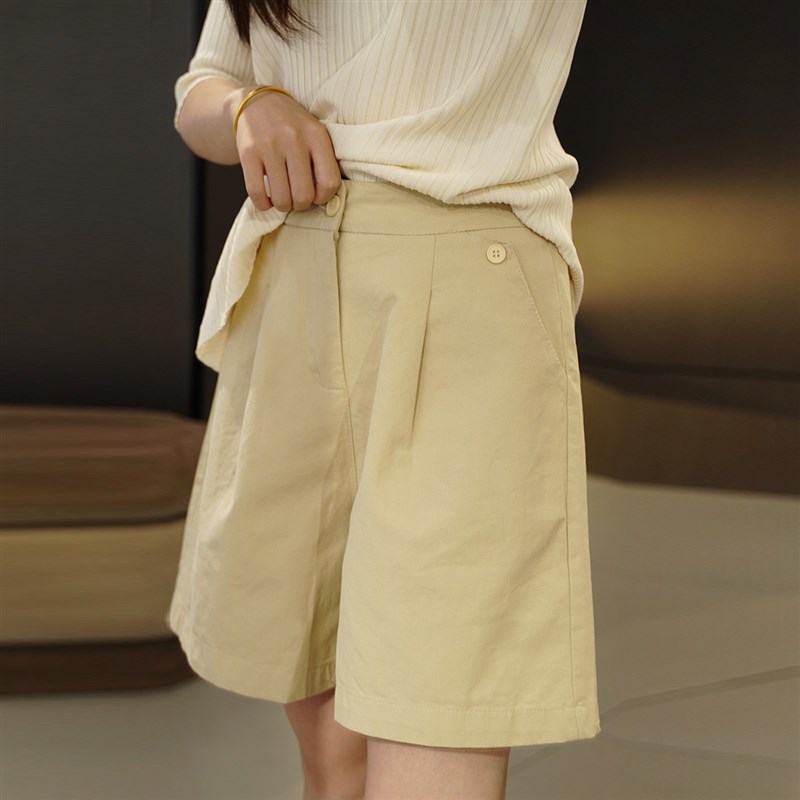 大码女透气水洗棉短裤夏 A版型阔腿显瘦五分裤胖mm百搭松紧腰女裤
