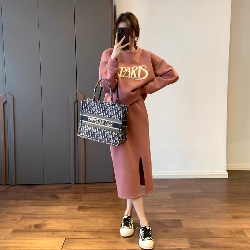 胖MM运动套装女春秋小个子休闲卫衣多巴胺穿搭300斤特大码套装裙