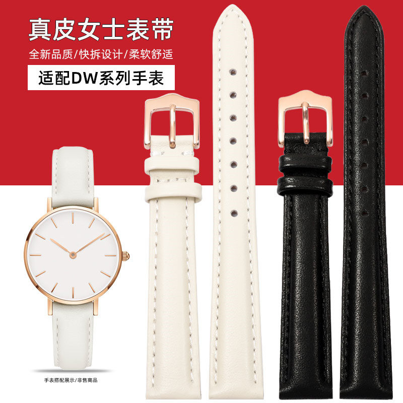 快拆设计时尚真皮手表带女款适配阿玛尼dw米白色针扣机械表带12mm