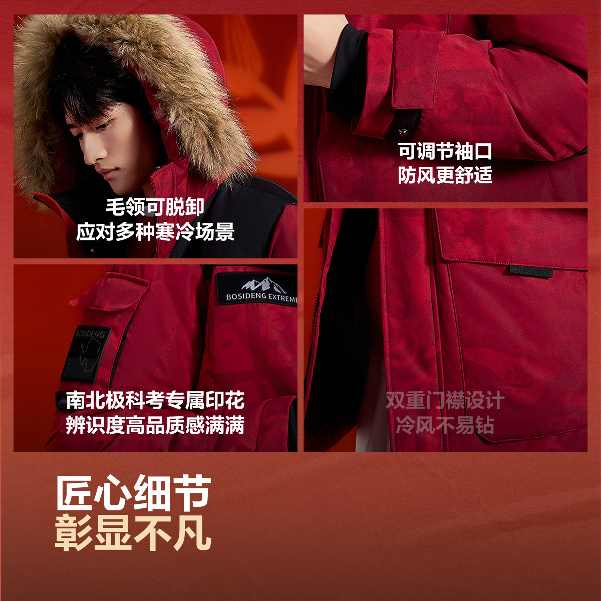 波司登加厚东北极寒女中长款鹅绒服红运当头工装红色防寒羽绒服