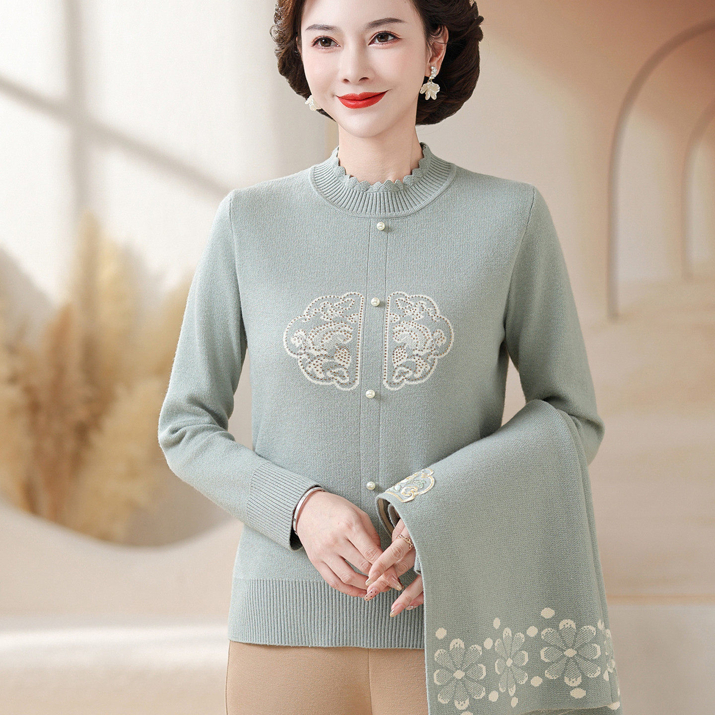 2025新中式妈妈秋装针织两件套