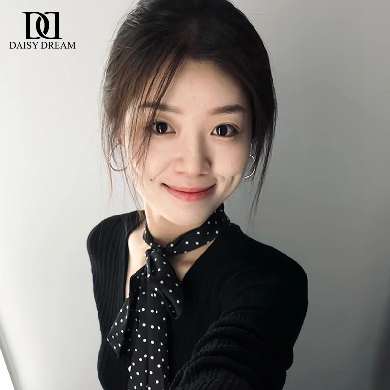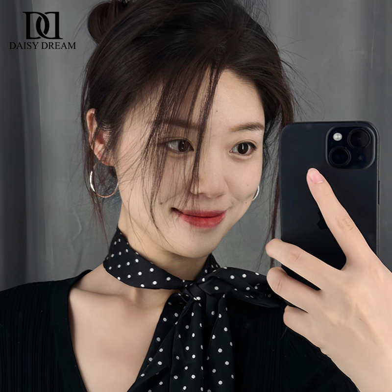 韩系黑色波点丝巾女2025新款系脖发带绑带高级感飘带围巾细窄长条