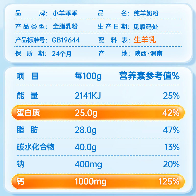 小羊乖乖纯羊奶粉中老年全脂高钙无添加 独立小包装 产自陕西富平