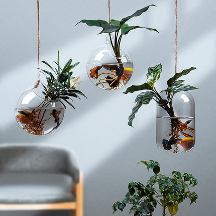 悬挂式植物玻璃瓶花瓶水养培器皿挂墙花盆客厅盆景盆创意透明壁挂