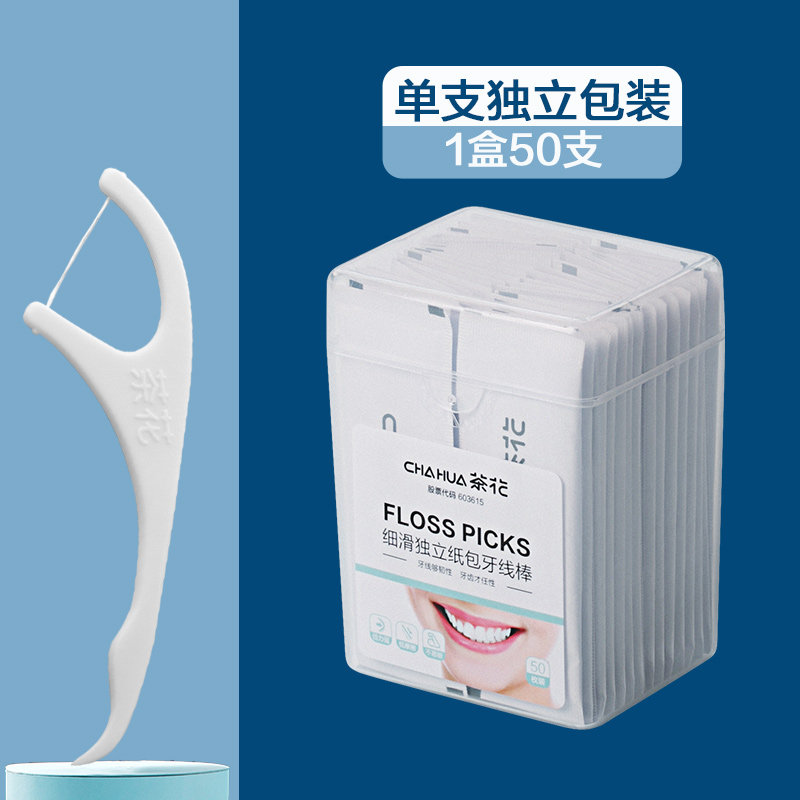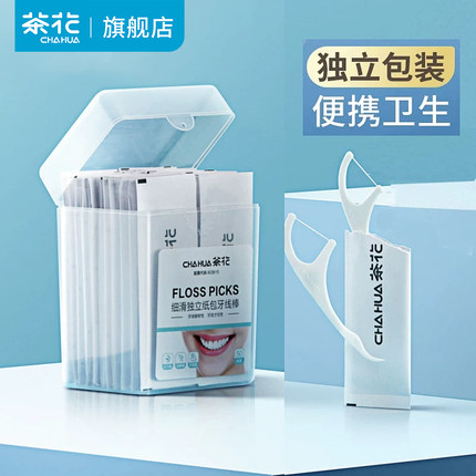茶花牙线超细牙线棒一次性独支装剔超细随身盒单独包装家庭装便携