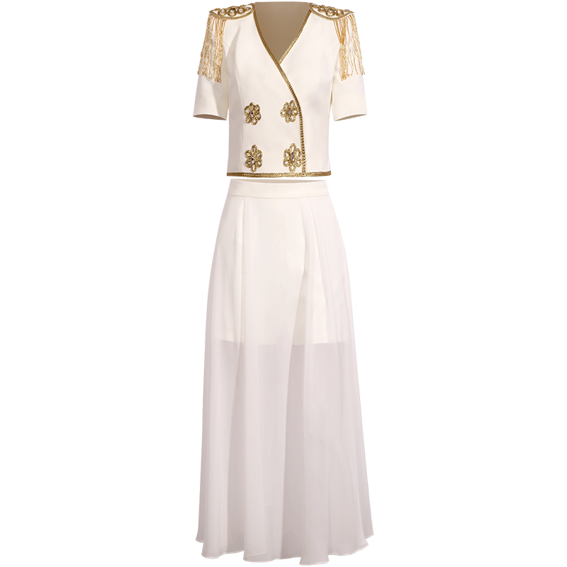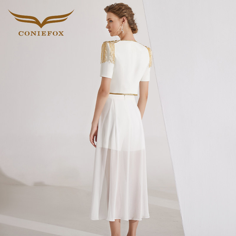 创意狐高端西装裙套装裙名媛女装白色纱裙两件套夏宴会主持人服装