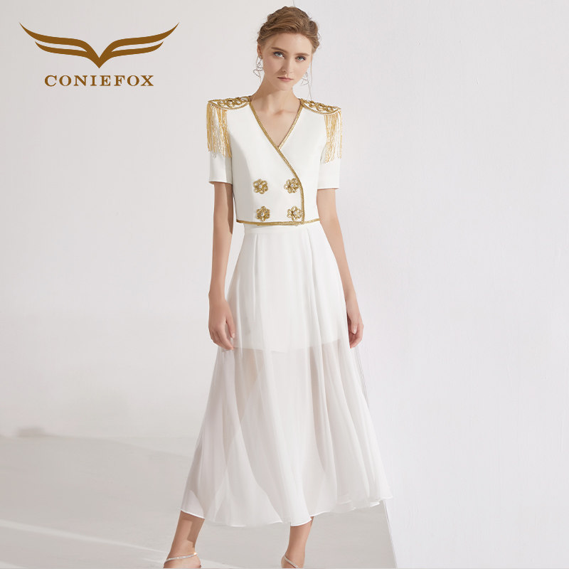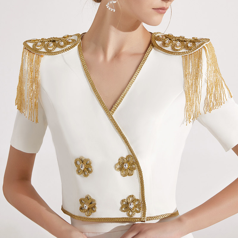 创意狐高端白色宴会主持人套装裙
