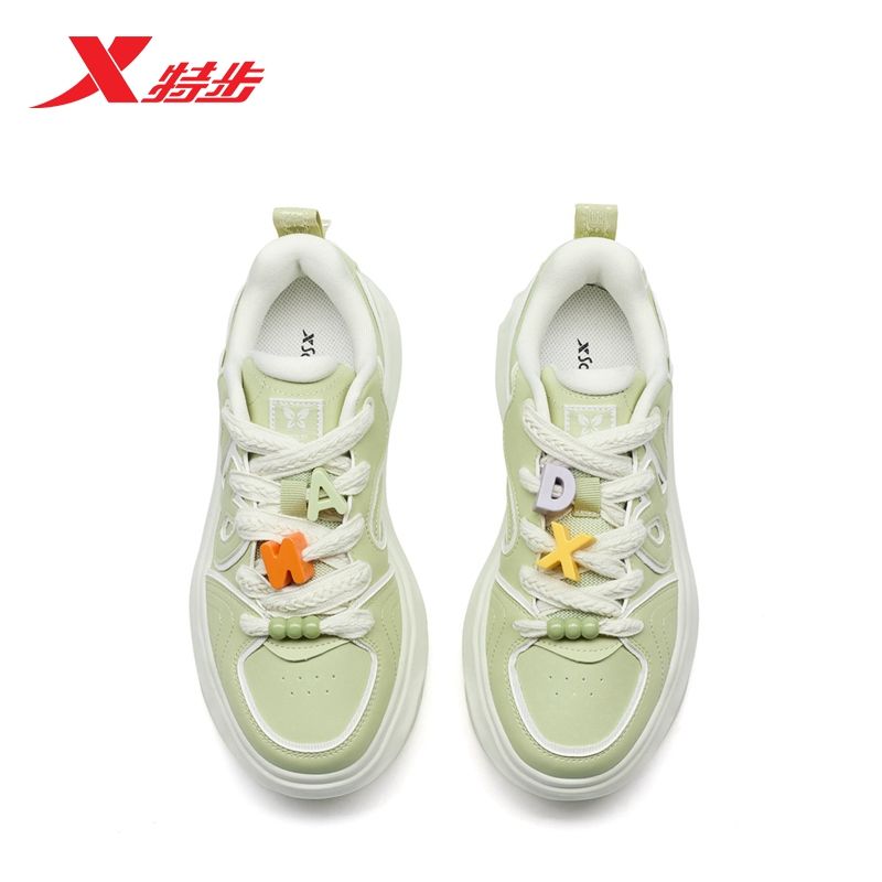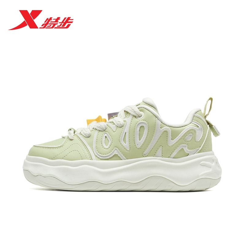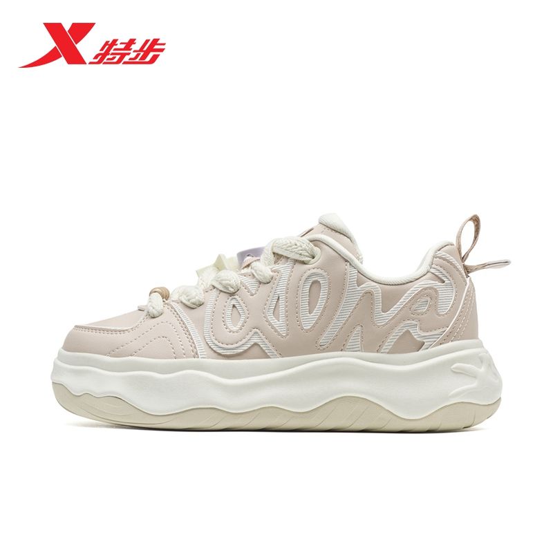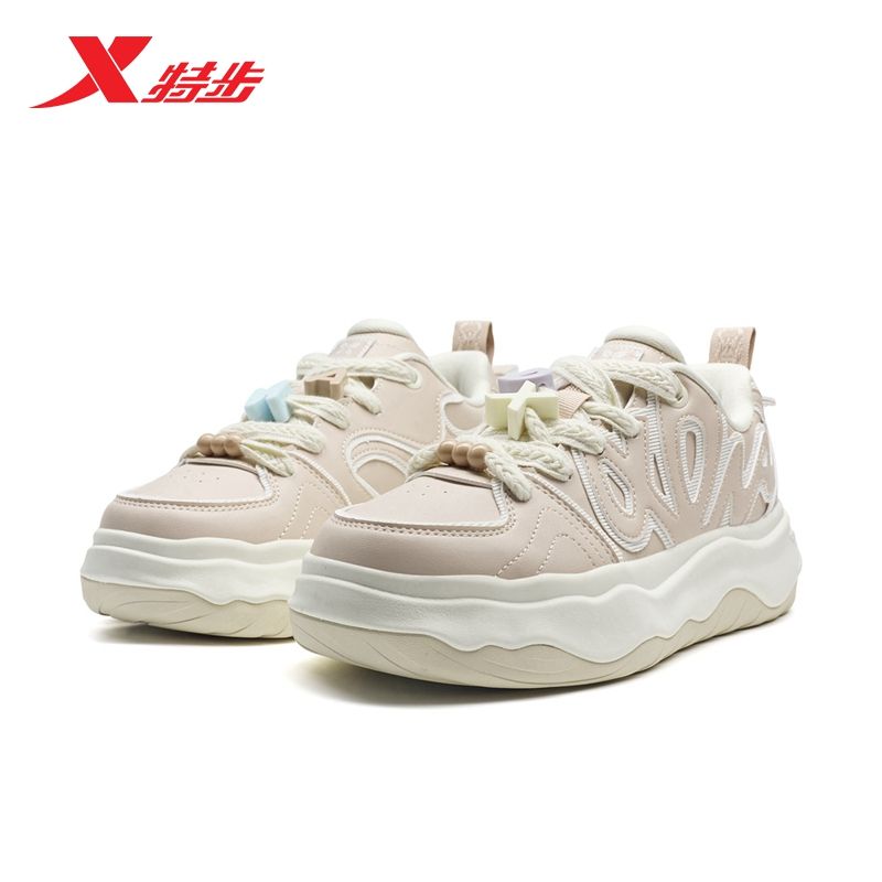 特步可可鞋女款2025年秋季可爱休闲时尚厚底板鞋女975318310039