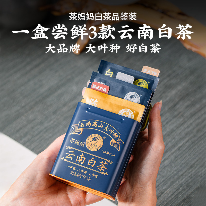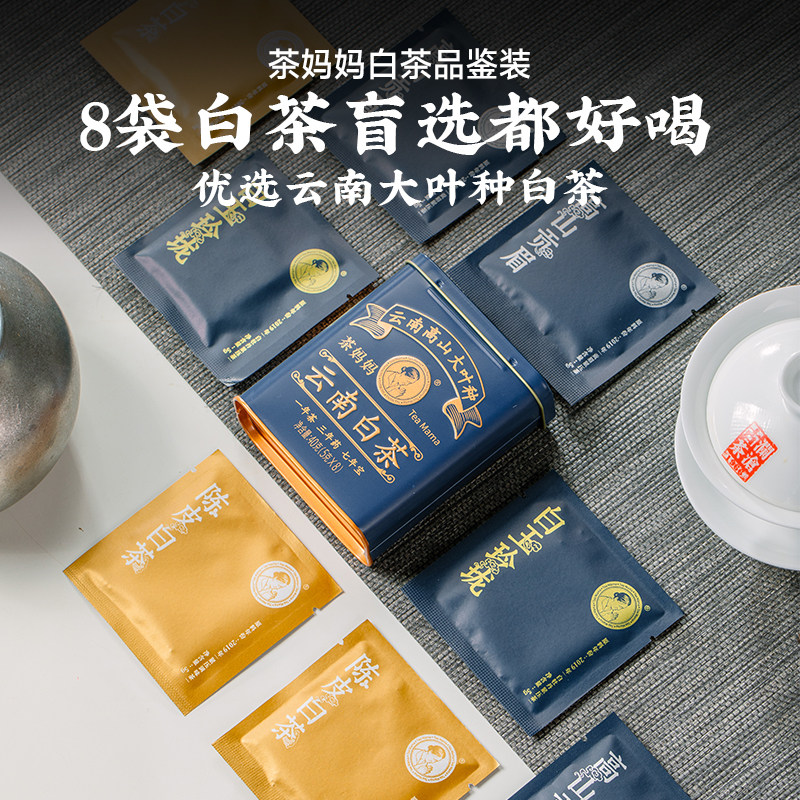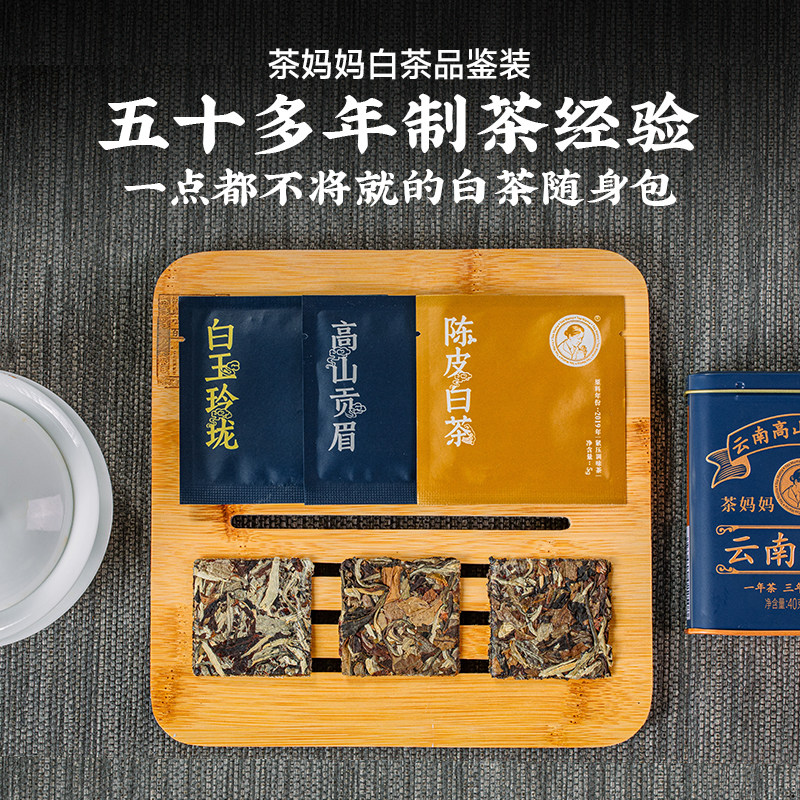 茶妈妈白茶品鉴装 白玉玲珑+高山贡眉+陈皮白茶试喝5g*8 一掰即泡