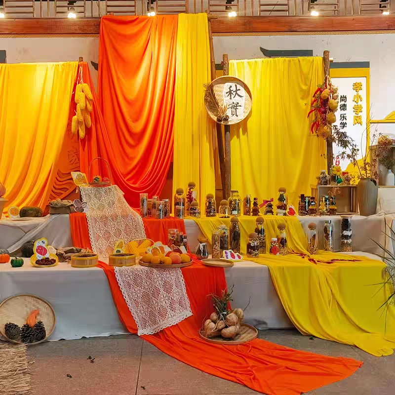 幼儿园晒秋天季纱幔挂布国风橙黄色系主题环创场背景布置装饰吊饰