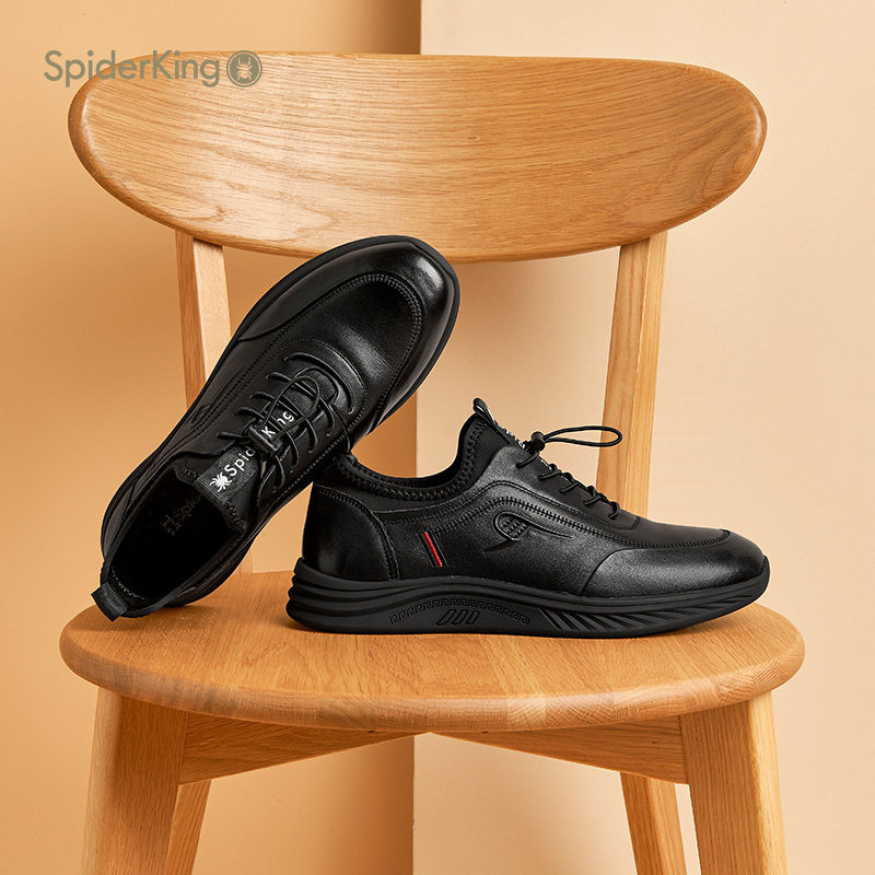 蜘蛛王男鞋2025秋冬新款真皮运动鞋系带休闲软底鞋跑步鞋上班通勤