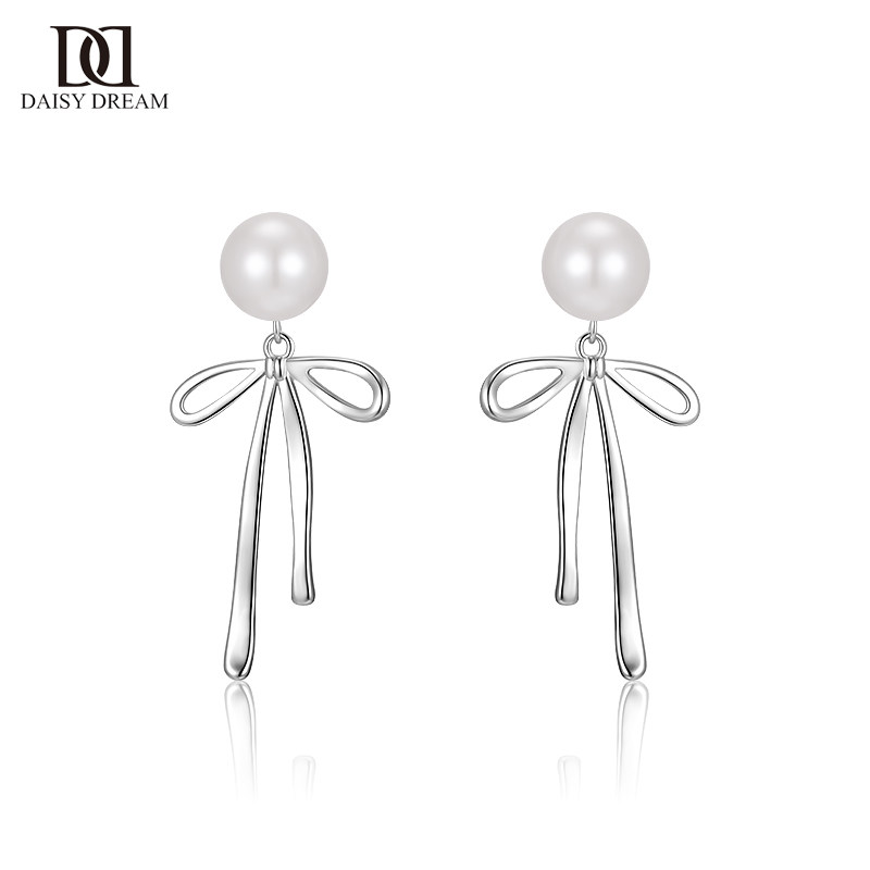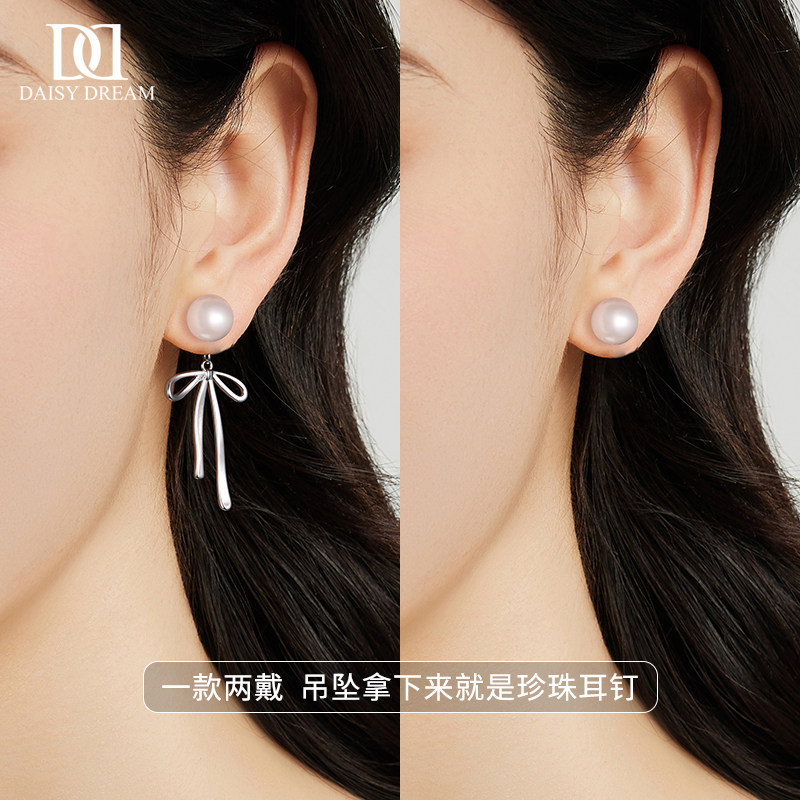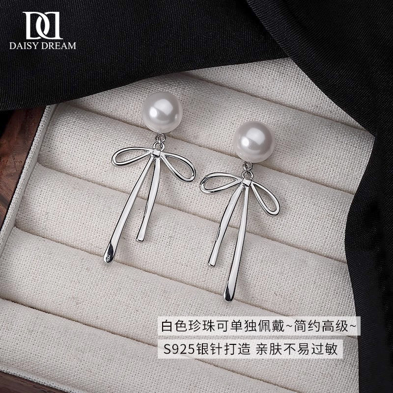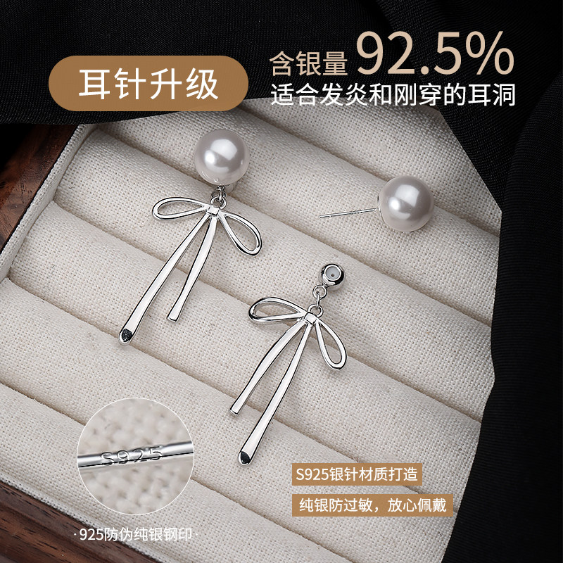 925纯银针施家珍珠耳环女高级感蝴蝶结耳坠轻奢气质耳钉显瘦耳饰