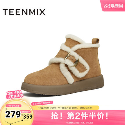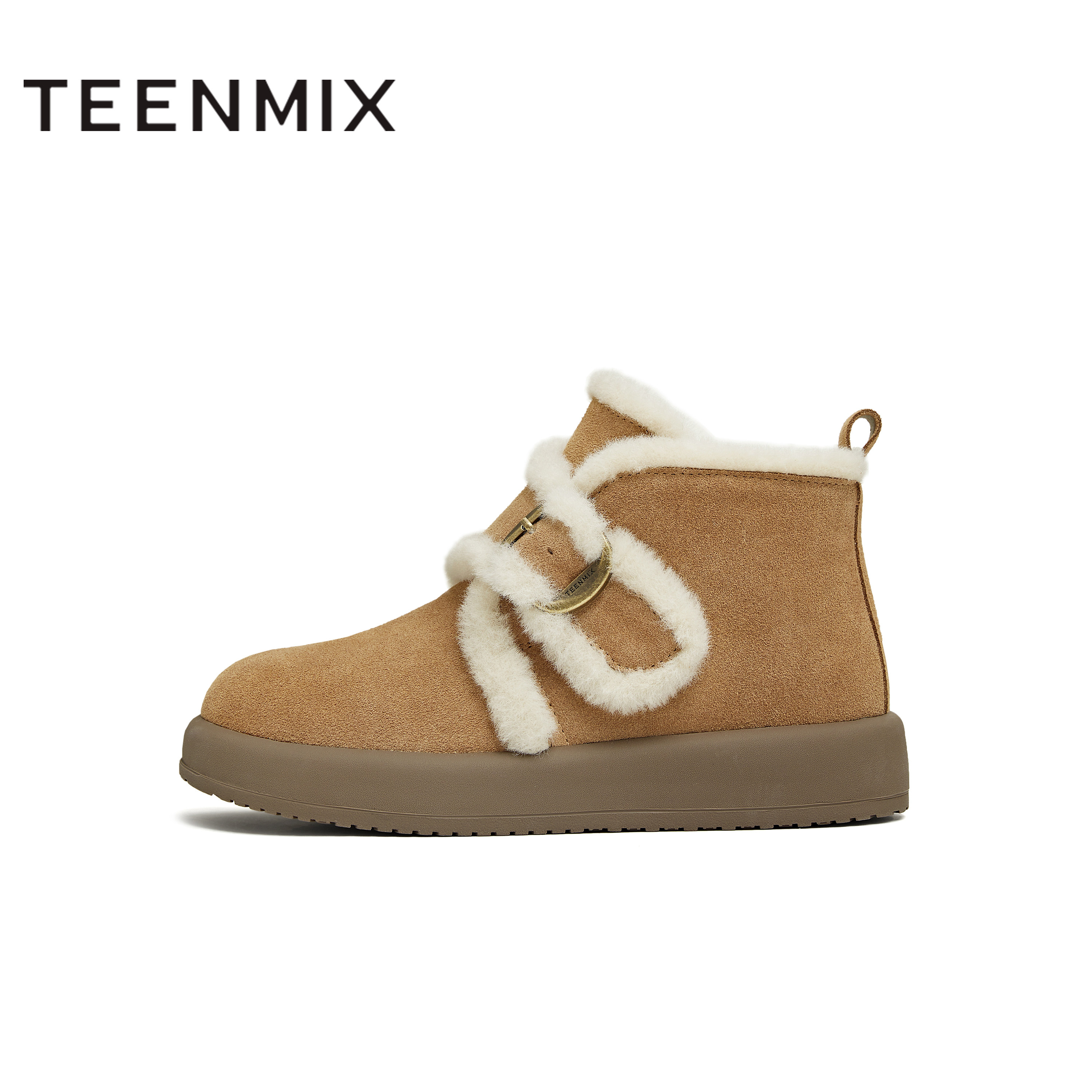 天美意冬新款商场同款一脚蹬毛绒舒适短靴女雪地靴BK423DD5
