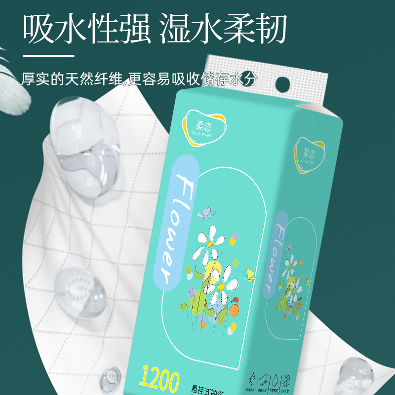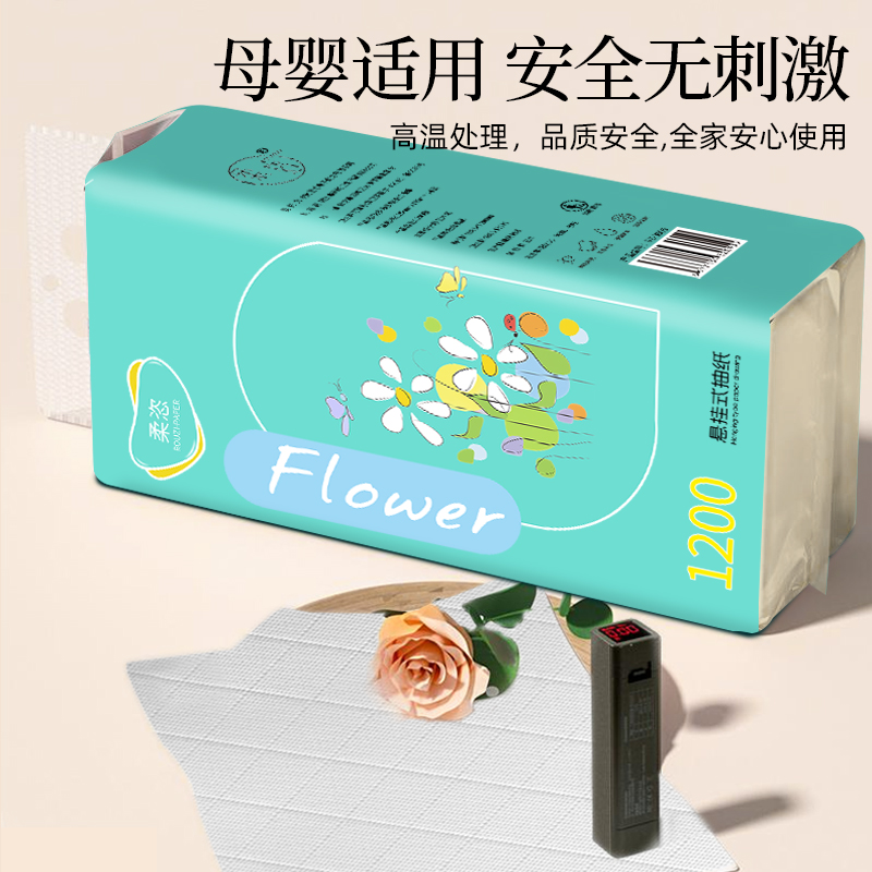 柔恣5层加厚1200张悬挂式抽纸餐巾纸面巾纸家用实惠装手提装纸巾