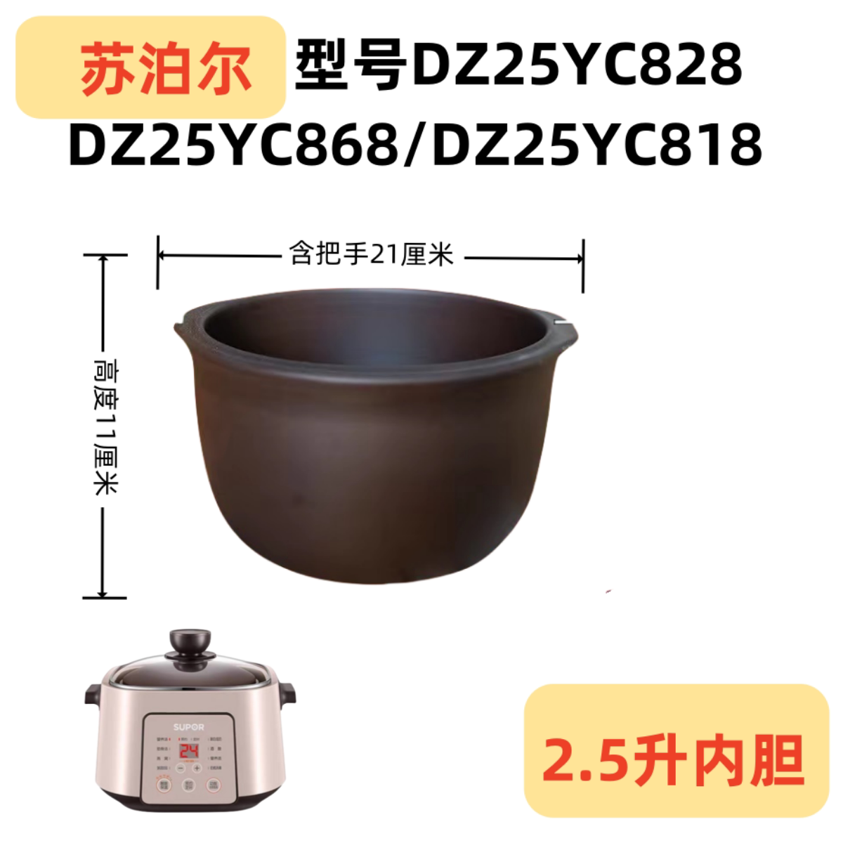 苏泊尔DZ25YC868电炖锅隔水炖盅2.5/0.45L升内胆盖子紫砂正品配件