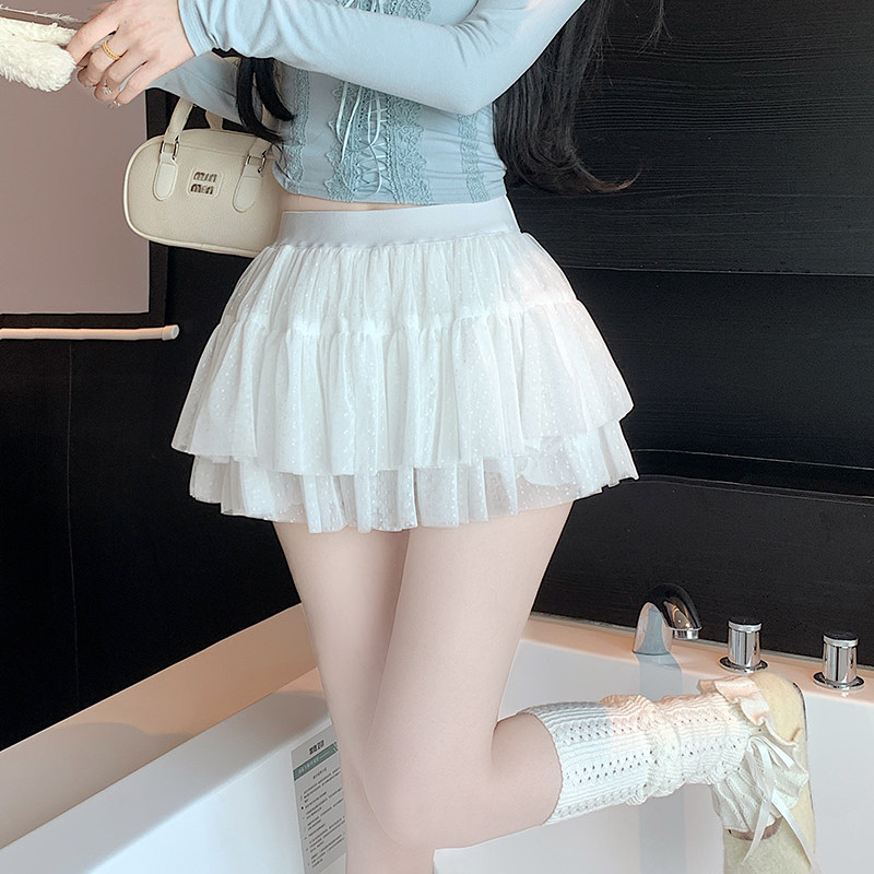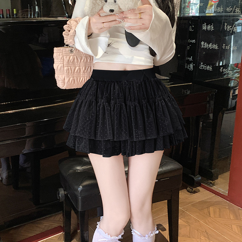 辣妹高腰蕾丝拼接蓬蓬裙半身裙女2025夏季新款纯欲风粉色蛋糕短裙