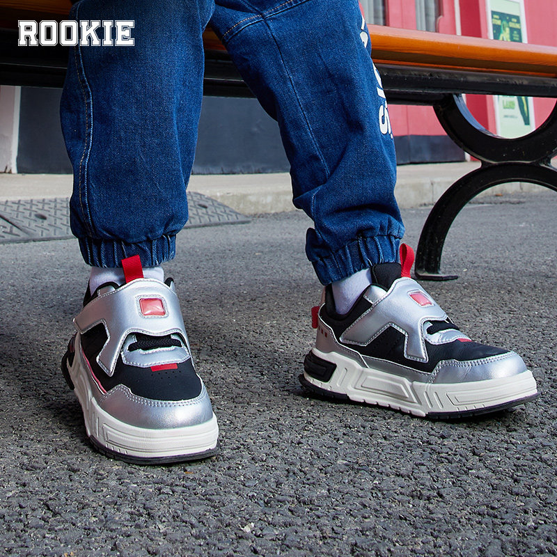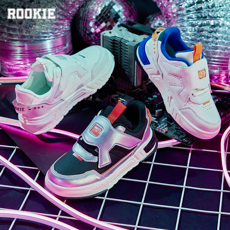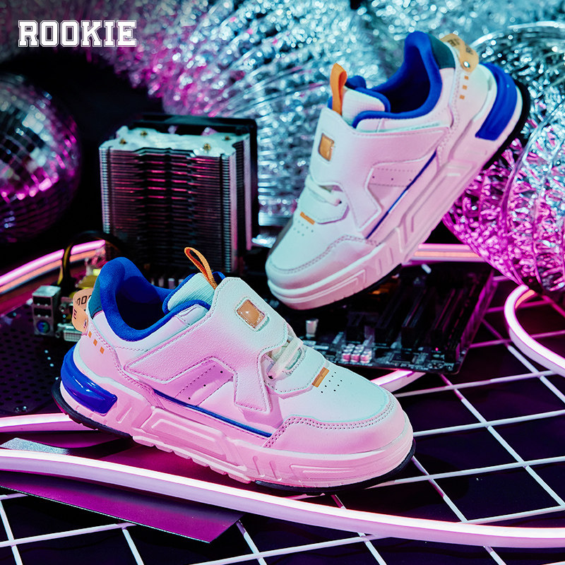 ROOKIE儿童板鞋小白鞋童鞋春秋新款男童魔术贴鞋子大童小童运动鞋