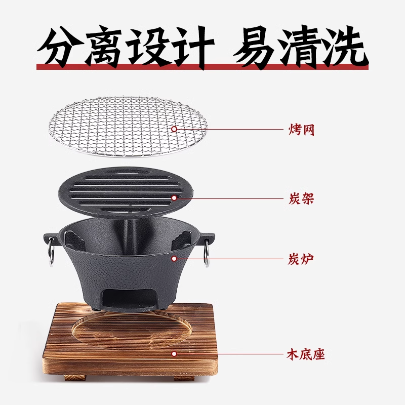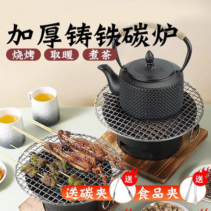 围炉煮茶烤火取暖炉子炉碳木炭火炉家用室内烧烤炉带烤网铸铁炭炉