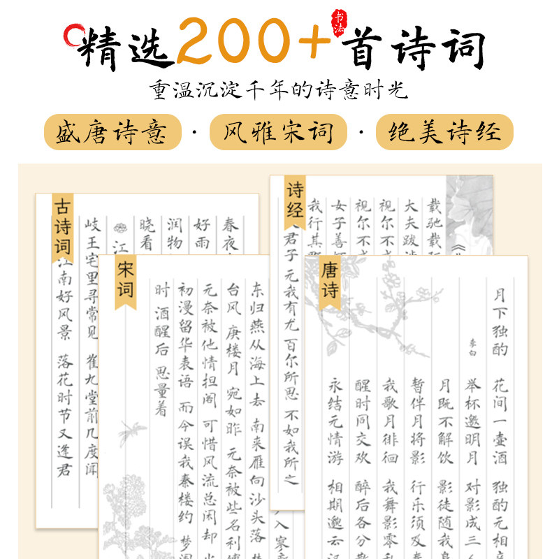 簪花小楷毛笔临摹字帖 唐诗宋词诗经古诗词书法软笔描红本 成人儿童软笔控笔训练字帖 静心解压初学者入门