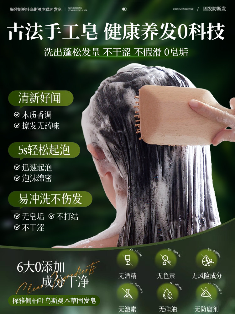 侧柏叶洗发皂防断固发新疆乌斯曼草何首乌控油去屑中药手工洗头皂
