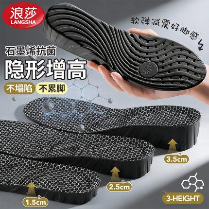 男士专用石墨烯内增高鞋垫隐形不累脚运动减震吸汗防臭靴子增高垫