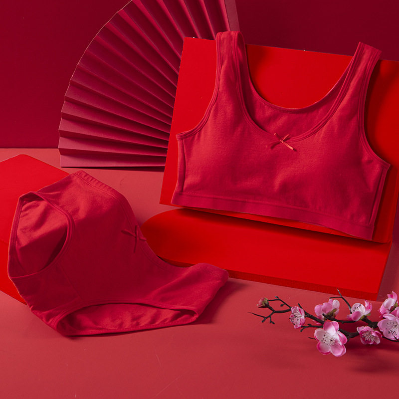 少女本命年红色内衣内裤套装女童2025学生发育期初中生纯棉小背心