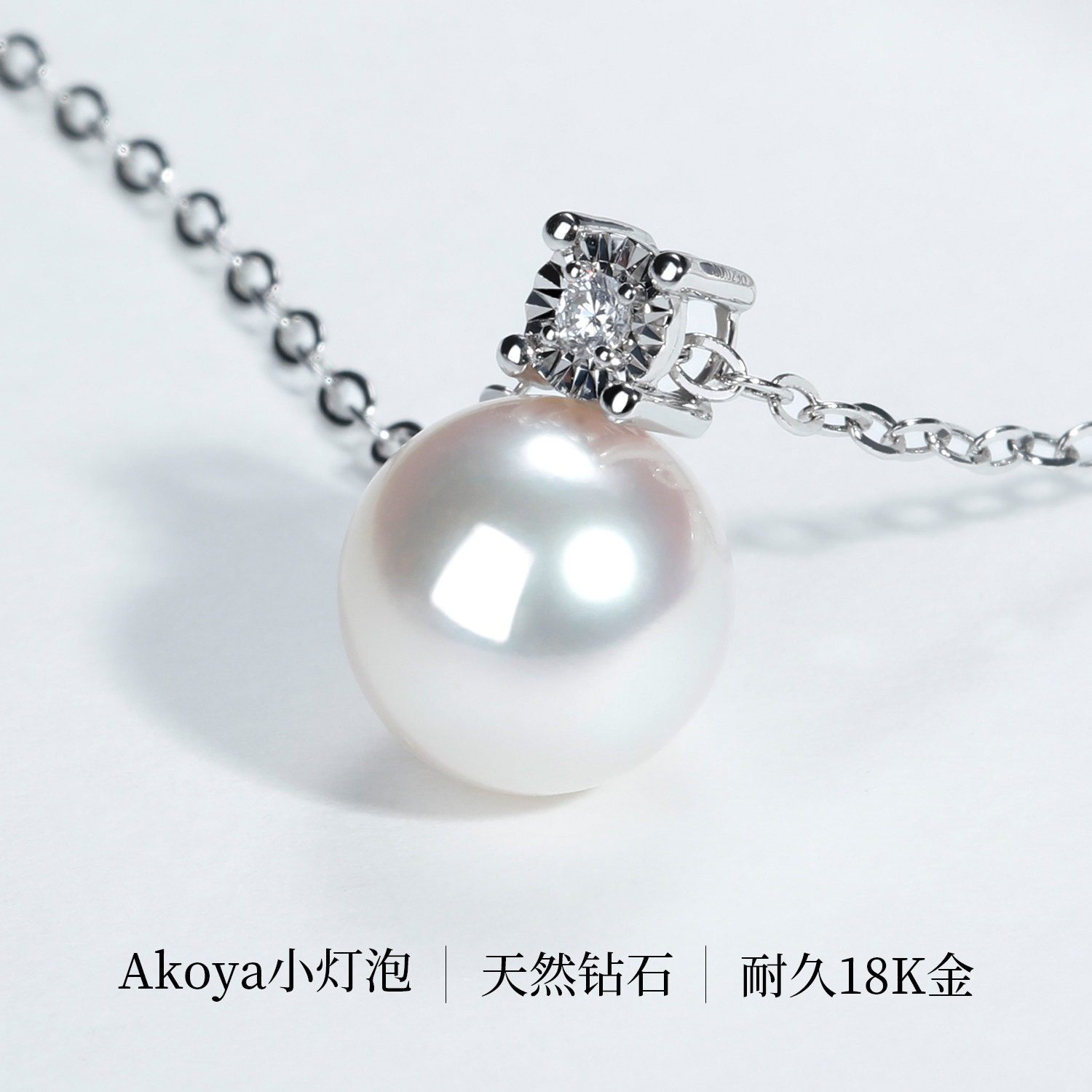 Luvor18K金Akoya海水珍珠项链女戴妃款天然钻石吊坠优雅锁骨链