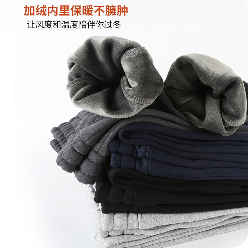 秋冬600G重磅加绒加厚银狐绒卫裤男华棉运动宽松束脚长裤子松紧腰