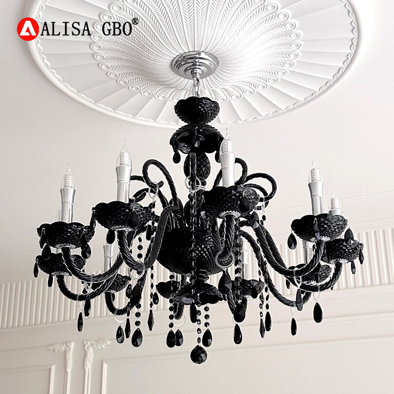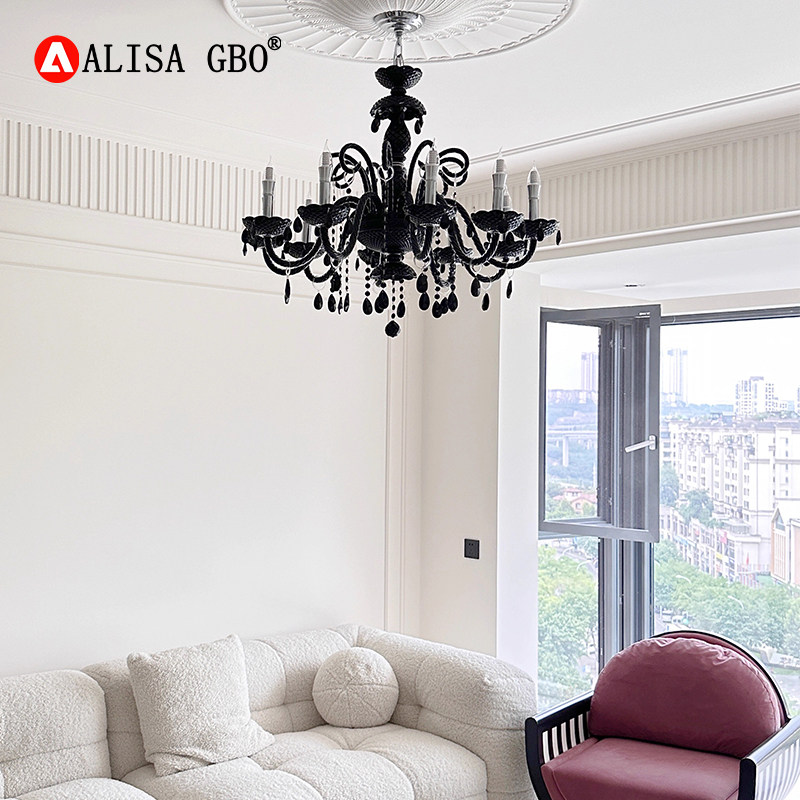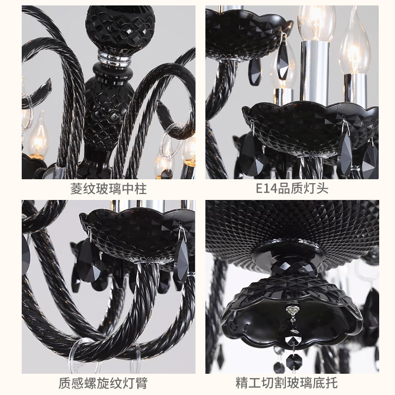 爱丽莎法式客厅吊灯复古黑色高级感欧式宫廷风蜡烛水晶烛台餐厅灯