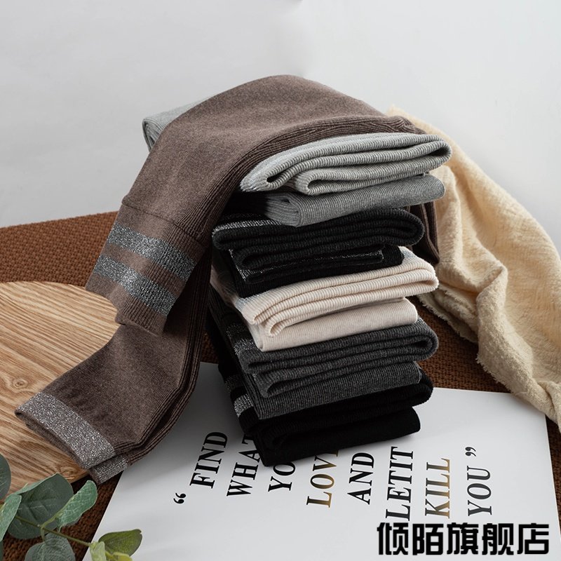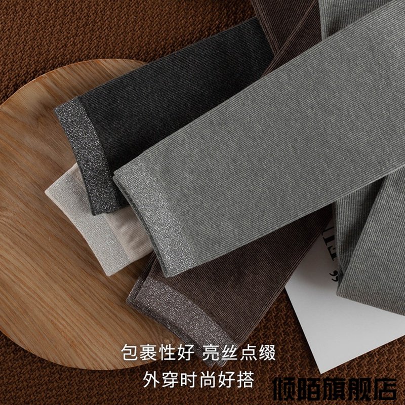 春秋季薄绒灰色打底裤女外穿小脚九分长裤子秋冬亮丝条纹网红潮款