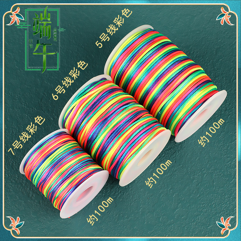 端午节五彩绳diy手工编织手链立夏蛋兜彩色线绳七彩五色编发彩绳