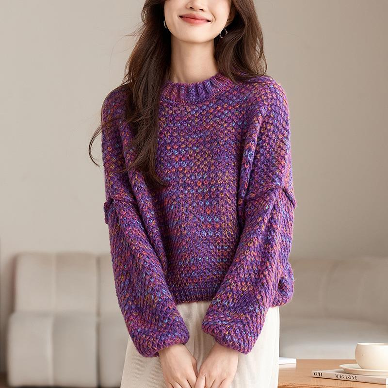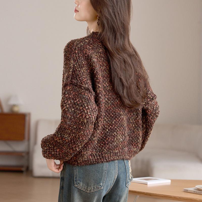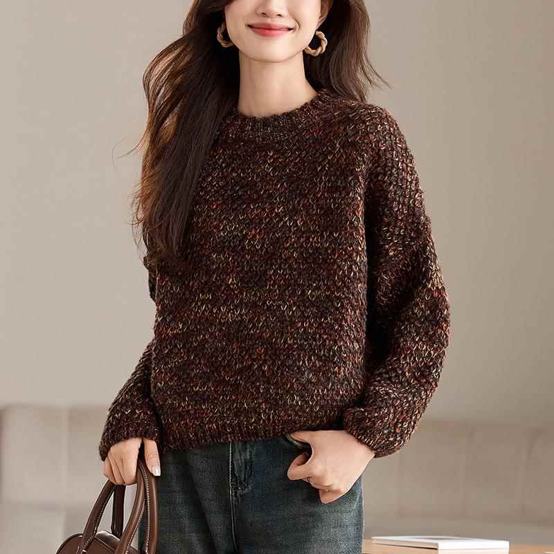 圆领粗线毛衣女士短款加厚秋冬2025新款慵懒风宽松上衣针织打底衫