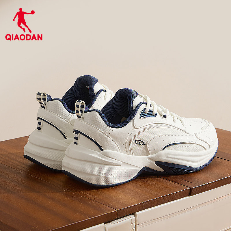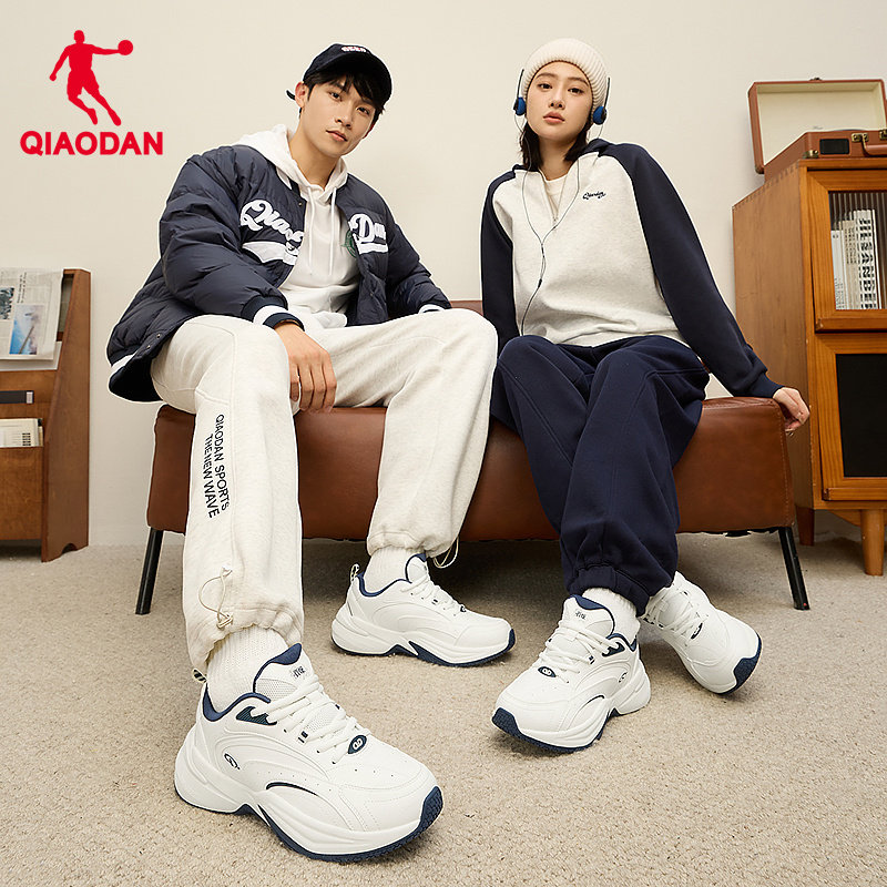 乔丹休闲跑步鞋女2026冬季新款厚底革面防水厚底运动鞋白色老爹鞋
