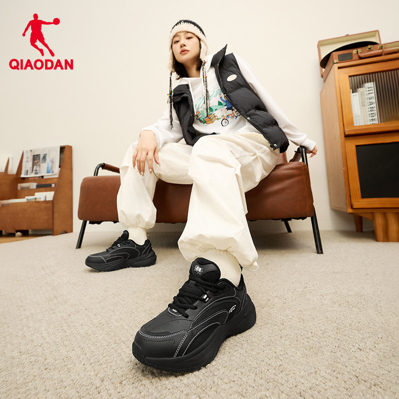 乔丹休闲鞋革面防水保暖老爹鞋女