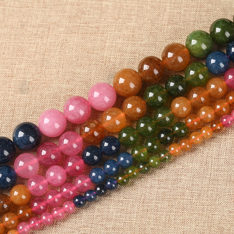 新款DIY手工饰品配件碧玺玉水晶玉髓圆珠散珠半成品手链原创人气