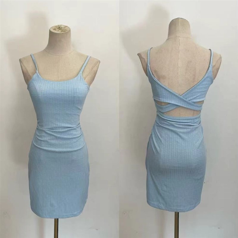 性感修身吊带连衣裙包臀显瘦打底紧身短裙辣妹无袖露背夜场蹦迪裙