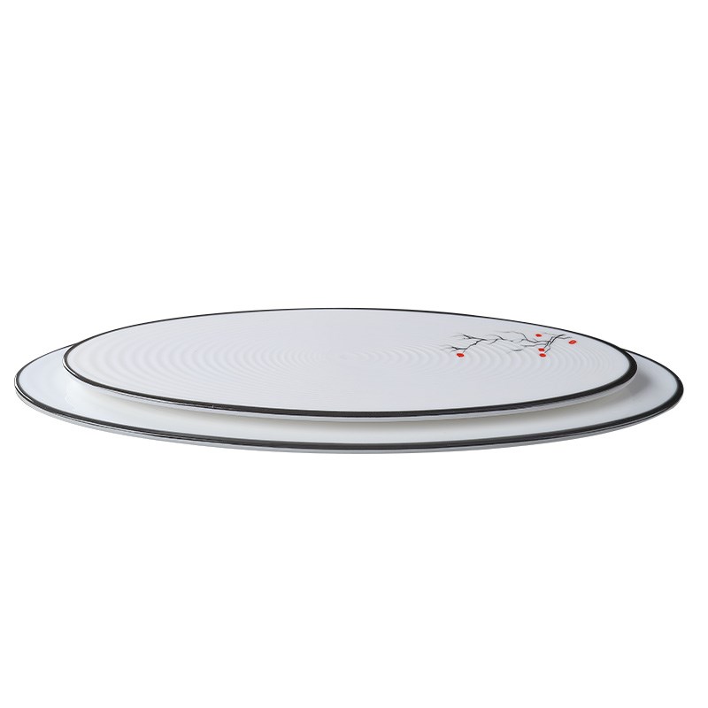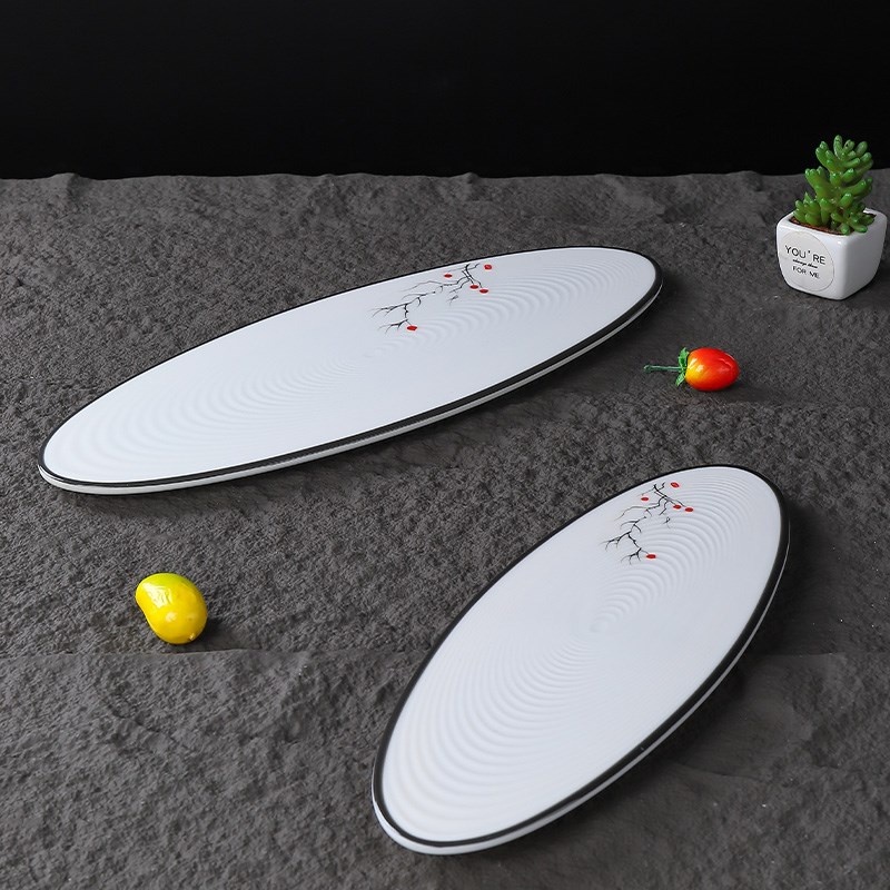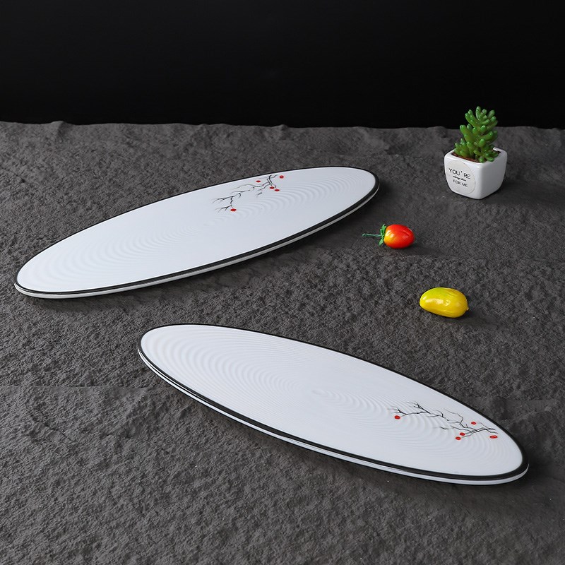 密胺中式餐具仿瓷长条托盘甜点糕点创意摆盘餐厅商用特色椭圆长盘