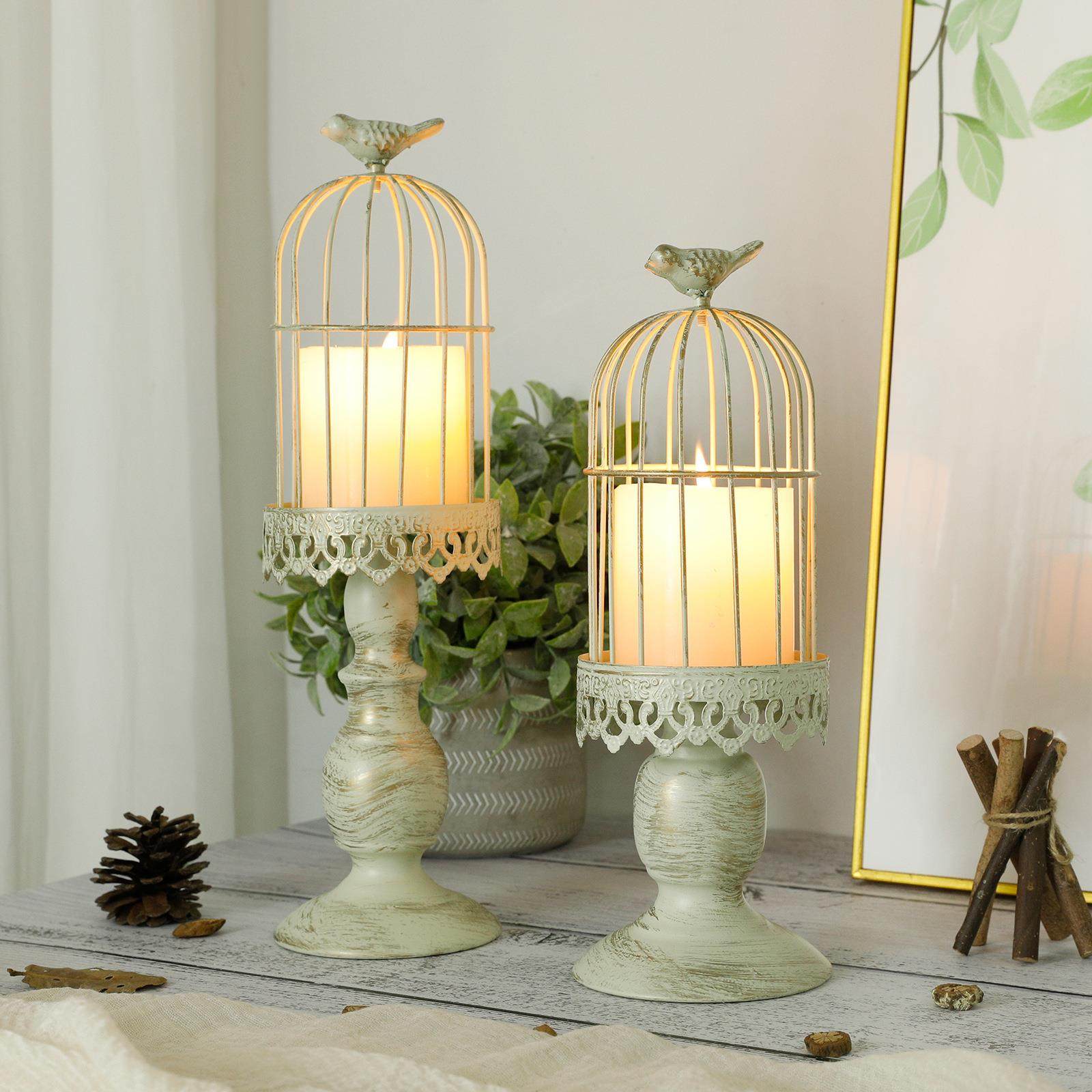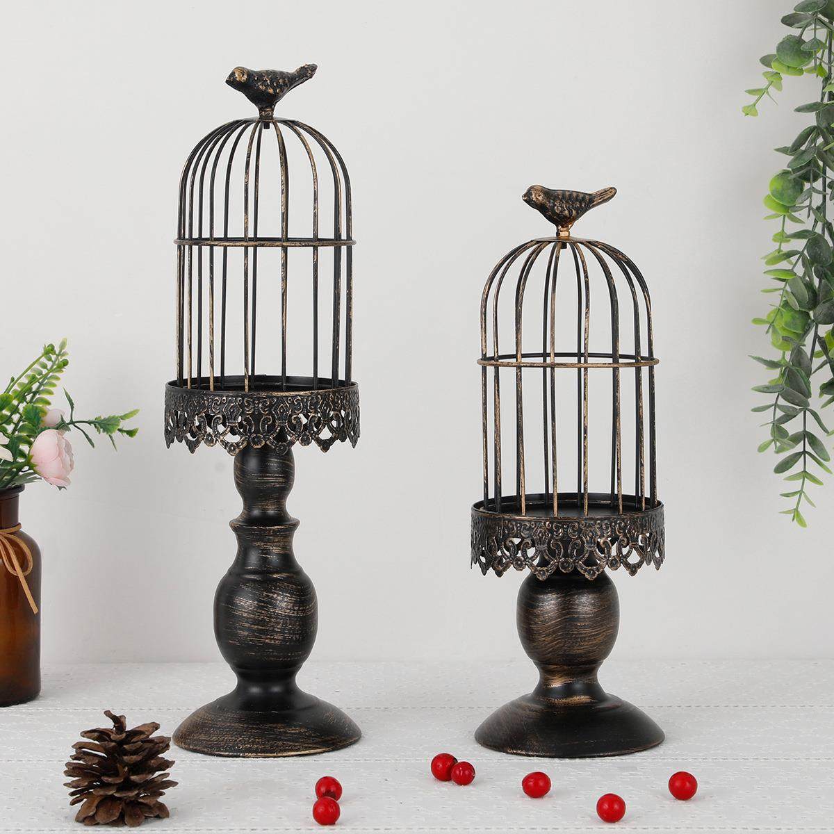 创意复古鸟笼烛台摆件欧式铁艺蜡烛台摄影婚庆餐厅道具跨境亚马逊