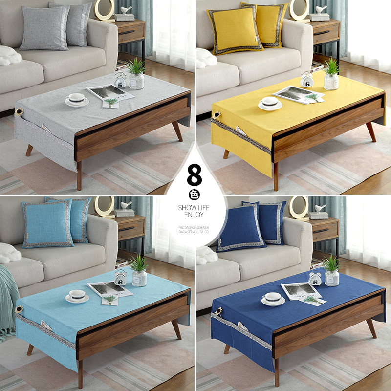 茶几桌布布艺棉麻小m清新中式防水长方形桌垫电视柜盖布餐桌布定