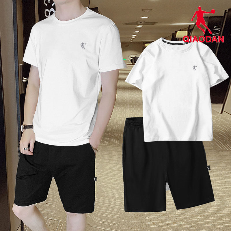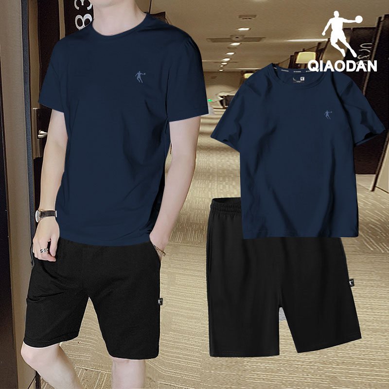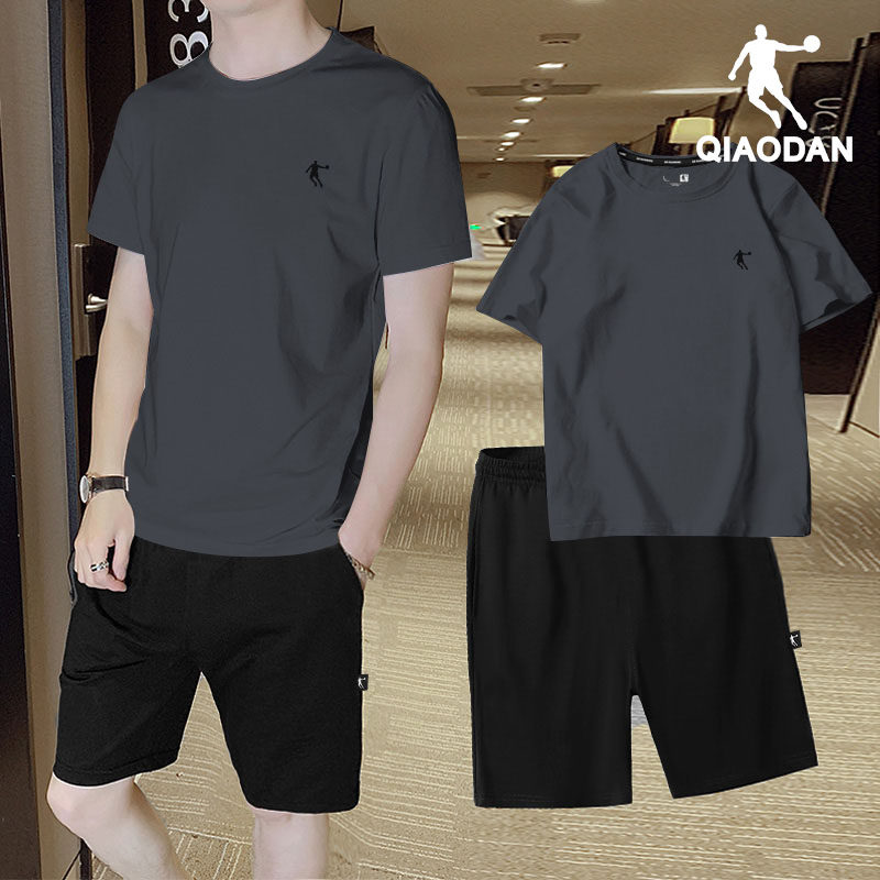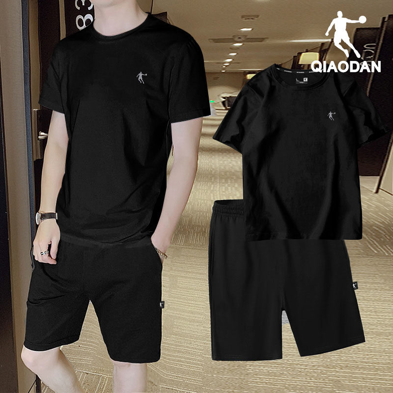 乔丹运动套装男士夏季速干爸爸休闲t恤宽松跑步冰丝短袖短裤套装