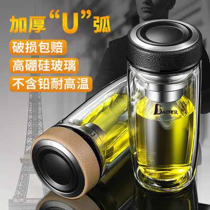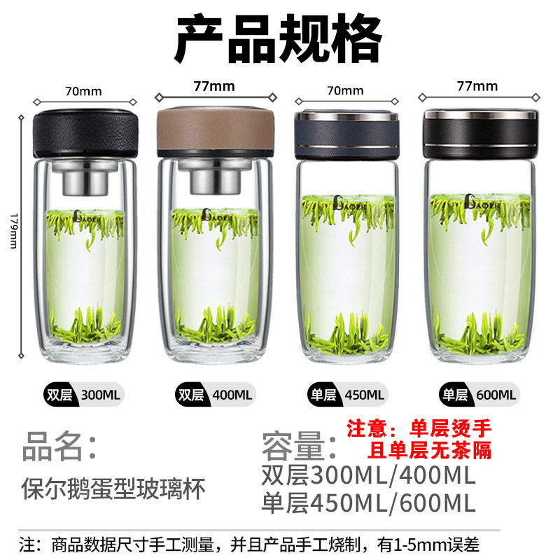 保尔鹅蛋杯双层玻璃杯男女加厚隔热便携水杯子车载商务泡茶杯单层