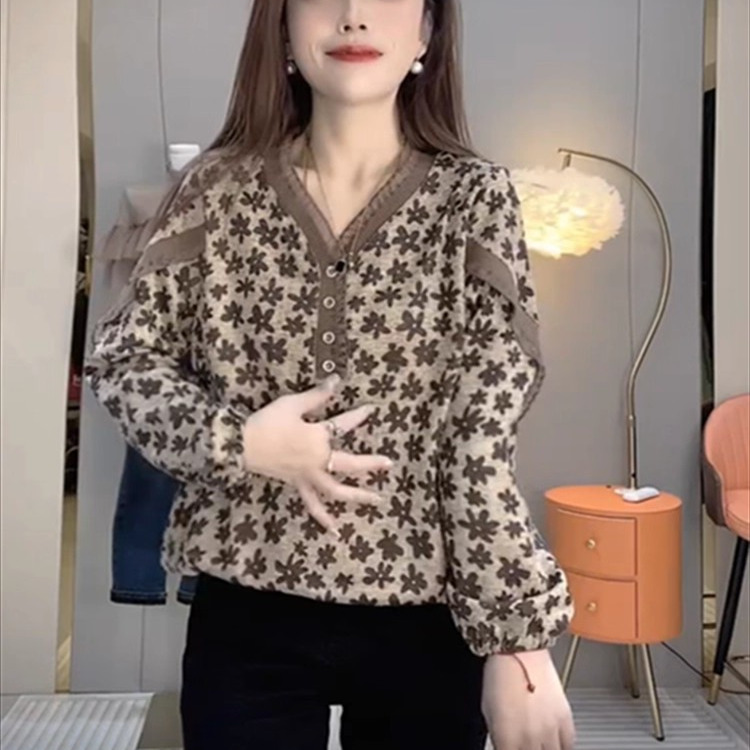 网红爆款时尚气质V领长袖打底衫女2025秋冬新款宽松减龄长袖小衫