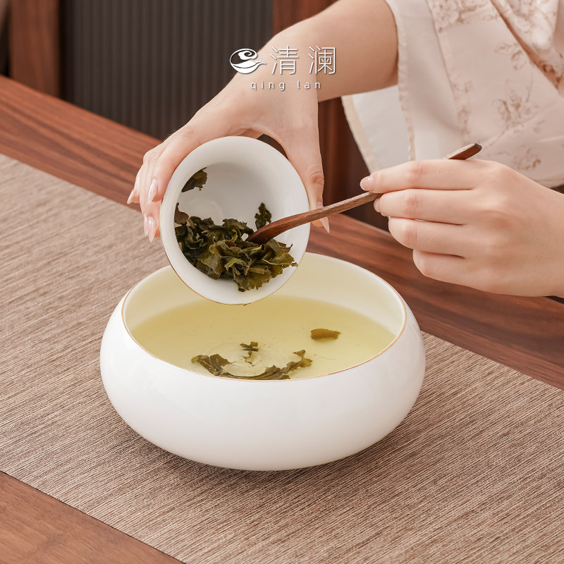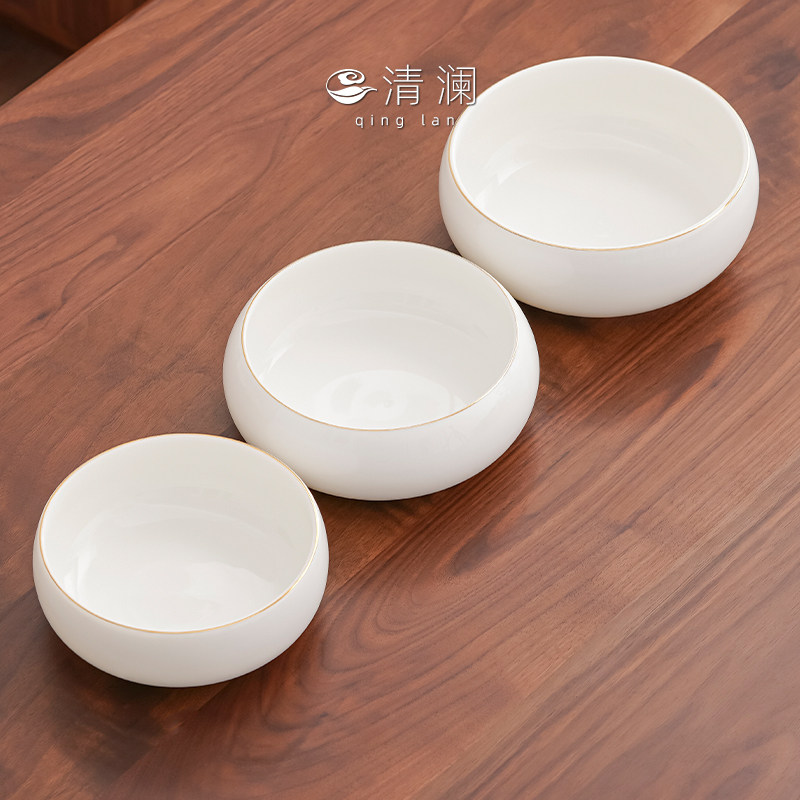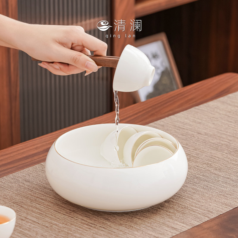 羊脂玉瓷大号茶洗建水茶渣缸水盂笔洗陶瓷盆杯洗家用中式茶道配件